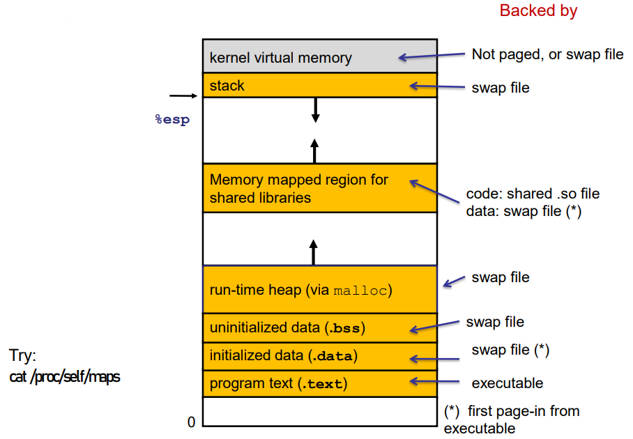 - 어느 가상 주소가 유효한지 확인(프로세스 메모리 레이아웃에 따라 다름)