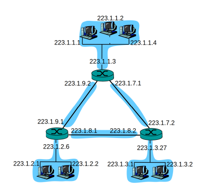 - 223.1.1.0/24는 223.1.1.0 – 223.1.1.255(netmask 255.255.255.0)를 포함한다