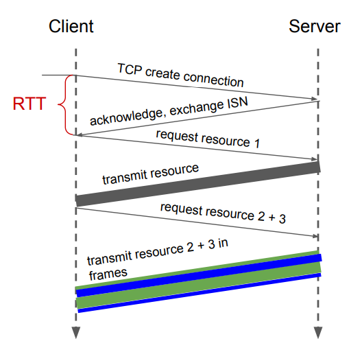 - HOL(Head of Line) 차단으로 이어짐: 리소스 2를 보낼 준비가 될 때까지 리소스 3을 보낼 수 없다