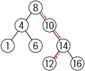 3. 그 다음 루트인 14와 비교를 해서 12가 작으므로 14의 왼쪽 서브 트리에서 탐색을 한다.