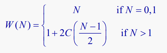 그리고, W(N)가 N개의 노드를 가진 이진 트리를 통과하는 비용을 나타내도록 하자.