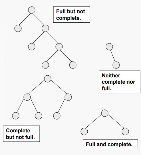 n개의 레벨을 가진 이진 트리 T는 마지막 레벨을 제외한 모든 레벨이 완전히 채워지고 마지막 레벨은 모든 노드가 왼쪽에 있는 경우 complete이다.