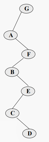 하지만 탐색시간은 훨씬 더 나쁠 수 있다. 만약 BST가 "stalk"라면, 마지막 요소의 검색 비용은 N이 될 것이다.