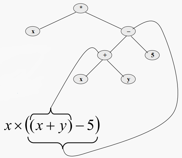 이진 트리는 대수적 표현을 표현하기 위해 사용될 수 있다. 각 하위 트리는 전체 식의 일부를 나타낸다. 이진 트리의 노드를 올바른 순서로 방문하면 대수식을 구성할 수 있다