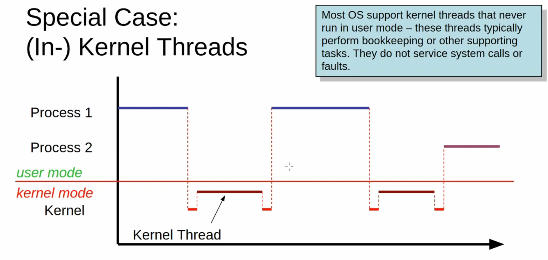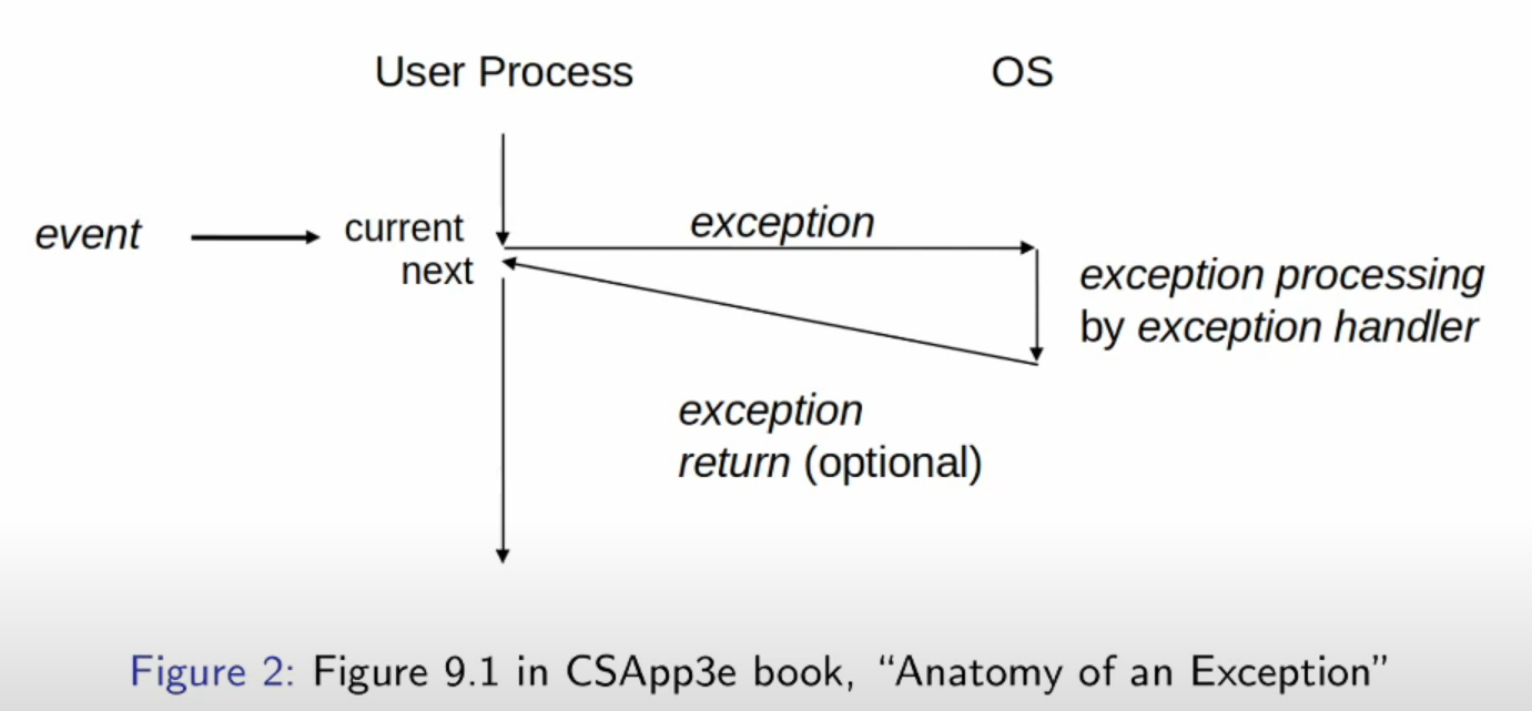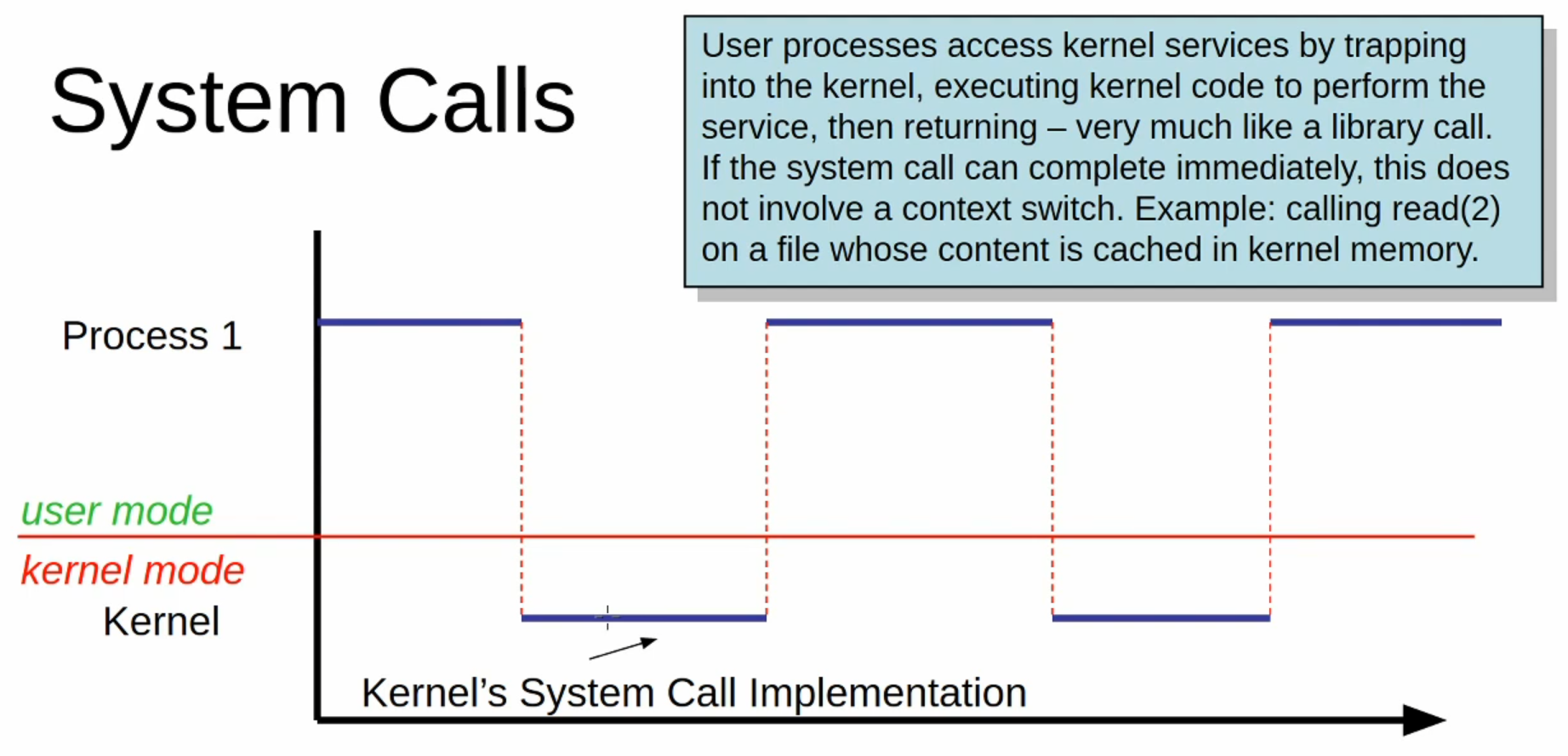 - System Call (시스템 콜): I/O instruction, fork, trap(프로세스가 service를 얻기 위해 kernel에 enter해야 되는 상황).