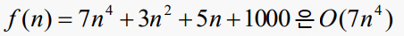 - f(n) = 7n^4 + 3n^2 + 5n + 100은 O(n^4)이다