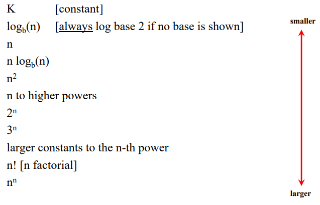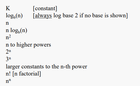 - Theorem 5: 다음의 각 함수들은 후속 함수들의 Big-O이다: