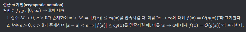 빅 오 표기법은 점근적 상한을 설명하는 데 사용된다.
