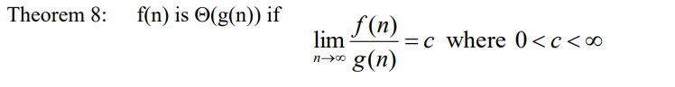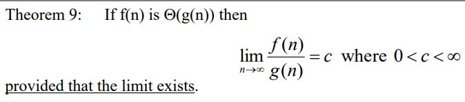 Corollary: 위의 한계가 0이면 f(n)는 O(g(n))이고, 한계가 ∞이면 f(n)는 Ω(g(n))이다.