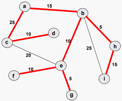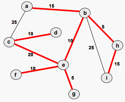 가중 그래프가 주어지면, 우리는 최소 총 가중치를 갖는 그래프에 대한 스패닝 트리를 찾고자 한다. 스패닝 트리의 총 무게는 간선의 무게의 합이다. 우리는 만약 T'가 그래프의 다른 스패닝 트리라면 T의 총 무게는 T'의 무게보다 작거나 같도록 스패닝 트리 T를 찾고 싶다고 하자.