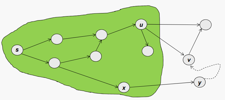 그러나 D(x) + wt(x,y) ≥ D(u) + wt(u,v)이다, 그렇지 않으면 v 대신 y가 S에 추가되었을 것이다.