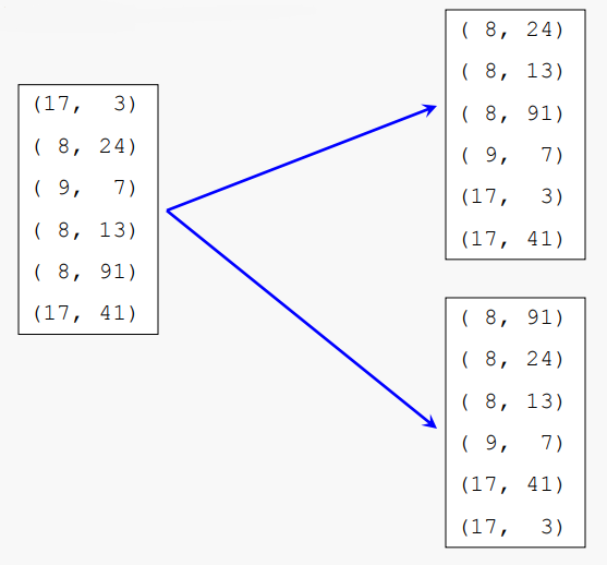 보통 데이터의 일부 필드 값(sort key)을 기준으로 오름차순 또는 내림차순으로 데이터 목록을 정렬해야 하는 일이 많다