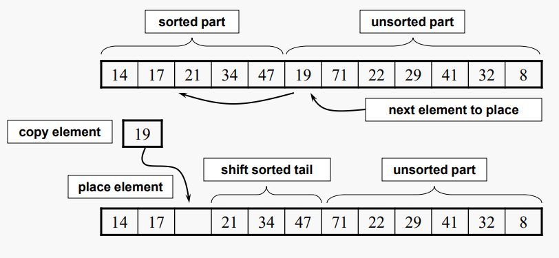 삽입 정렬은 각 목록 요소의 초기 위치가 최종 위치에 상당히 가까울 때 가장 효율적이다. 다음 배열을 한번 보자: