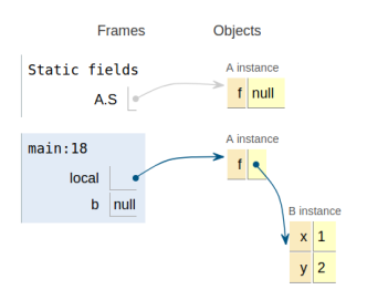 - Static fields: 정적 필드는 클래스가 로드될 때 생성되고, 프로그램 실행이 종료될 때까지 유지되므로, 이들은 루트로 간주된다.