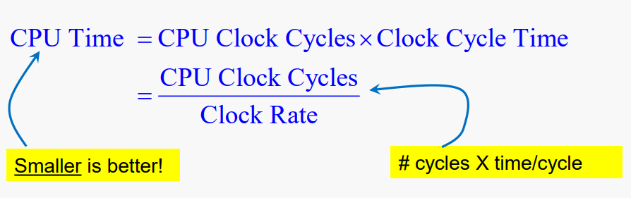 - 그렇기 때문에 하드웨어 설계자는 클럭 속도를 사이클 수와 비교해야 한다.