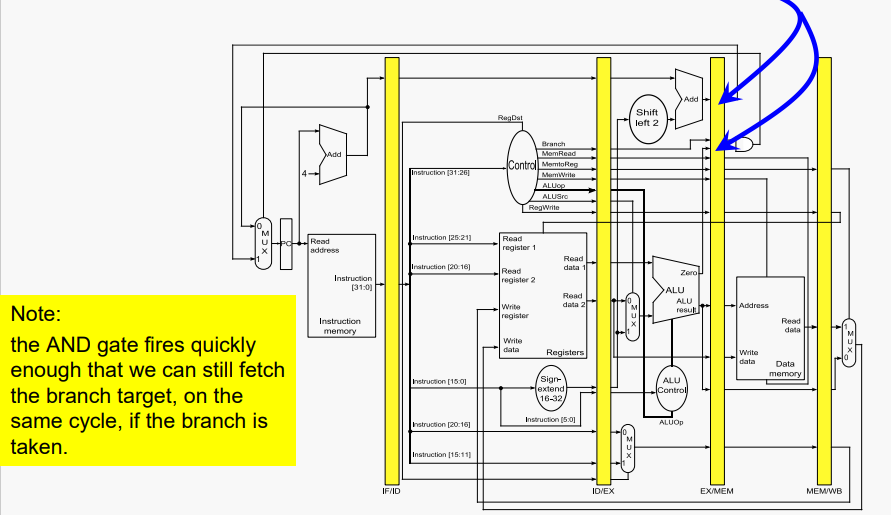 하지만 그렇게 까지 하기위해선 (CPU / 메모리) 비용이 많이든다. 만약 우리가 branch를 받지 않는다면, 우리는 불필요하게 2 사이클 동안 and instruction을 지연 시켰다.